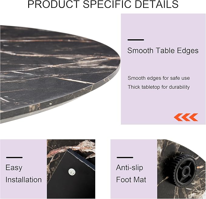 - Dining Table Set for 4:This 45 inch round dining table set for 4 features a stylish black faux marble grain finish that adds warmth and charm to any dining space. Perfect for kitchen, apartment, or small space dining room setup