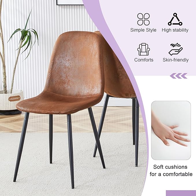 - Comfortable Suede Chairs with Cushioned Seat:Each dining chair features a high-density foam cushion wrapped in soft suede-like fabric. The ergonomic curved back and anti-slip legs provide comfort and support for long meals or gatherings