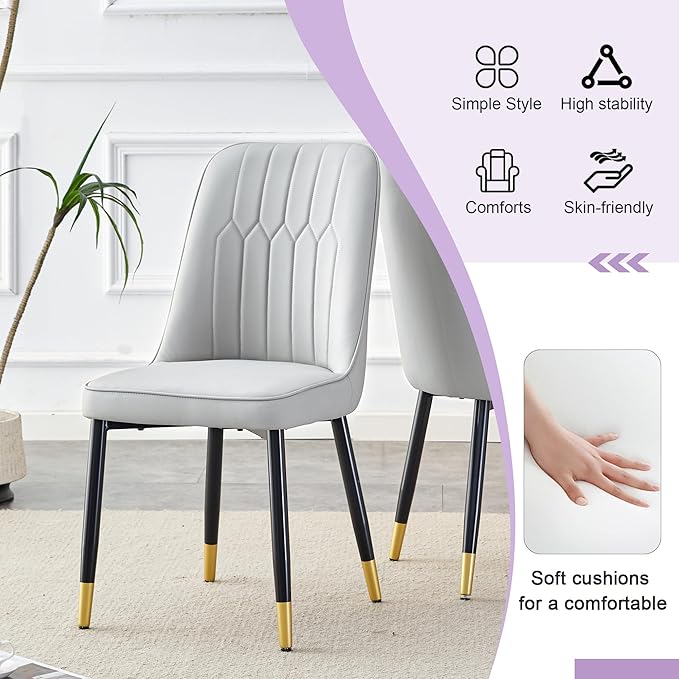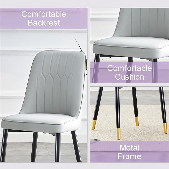 - PU Leather Chairs with High-Density Cushion:Each dining chair is upholstered in smooth PU leather with a high-density sponge cushion for ultimate comfort. The ergonomic backrest, metal frame, and non-slip foot mats ensure stable support for long meals