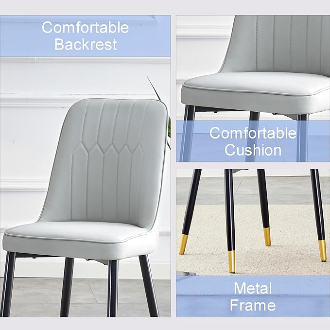 - PU Leather Chairs with High-Density Cushion:Each dining chair is upholstered in smooth PU leather with a high-density sponge cushion for ultimate comfort. The ergonomic backrest, metal frame, and non-slip foot mats ensure stable support for long meals