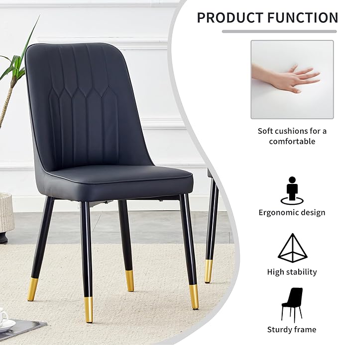 - PU Leather Chairs with High-Density Cushion:Each dining chair is upholstered in smooth PU leather with a high-density sponge cushion for ultimate comfort. The ergonomic backrest, metal frame, and non-slip foot mats ensure stable support for long meals