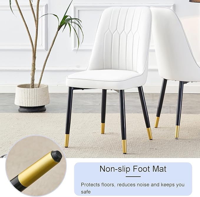 - PU Leather Chairs with High-Density Cushion:Each dining chair is upholstered in smooth PU leather with a high-density sponge cushion for ultimate comfort. The ergonomic backrest, metal frame, and non-slip foot mats ensure stable support for long meals