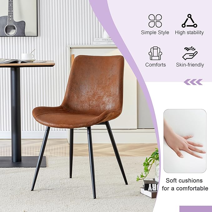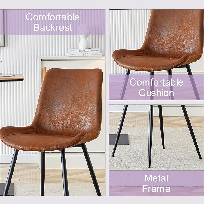 - Comfortable Suede Chairs with Cushioned Seat:Each dining chair features a high-density foam cushion wrapped in soft suede-like fabric. The ergonomic curved back and anti-slip legs provide comfort and support for long meals or gatherings