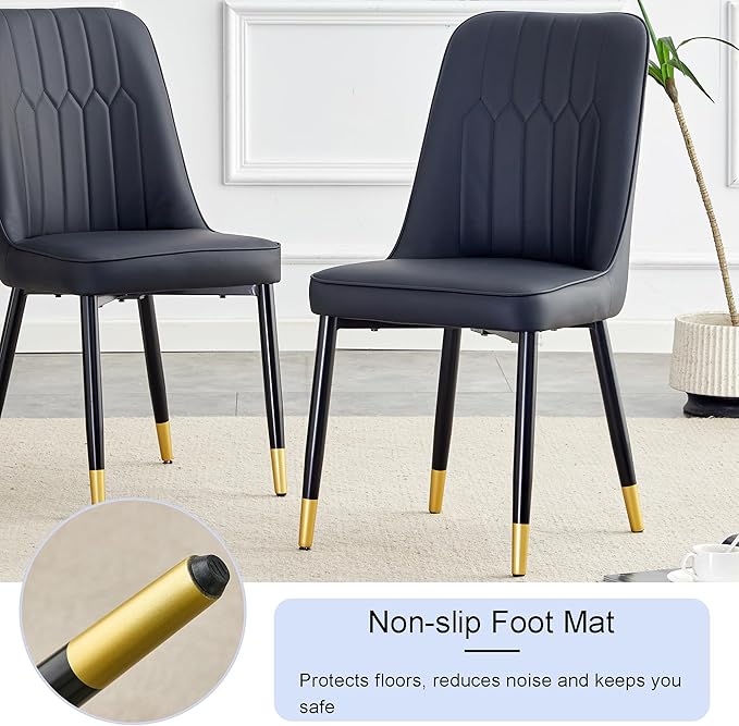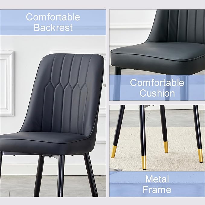 - PU Leather Chairs with High-Density Cushion:Each dining chair is upholstered in smooth PU leather with a high-density sponge cushion for ultimate comfort. The ergonomic backrest, metal frame, and non-slip foot mats ensure stable support for long meals