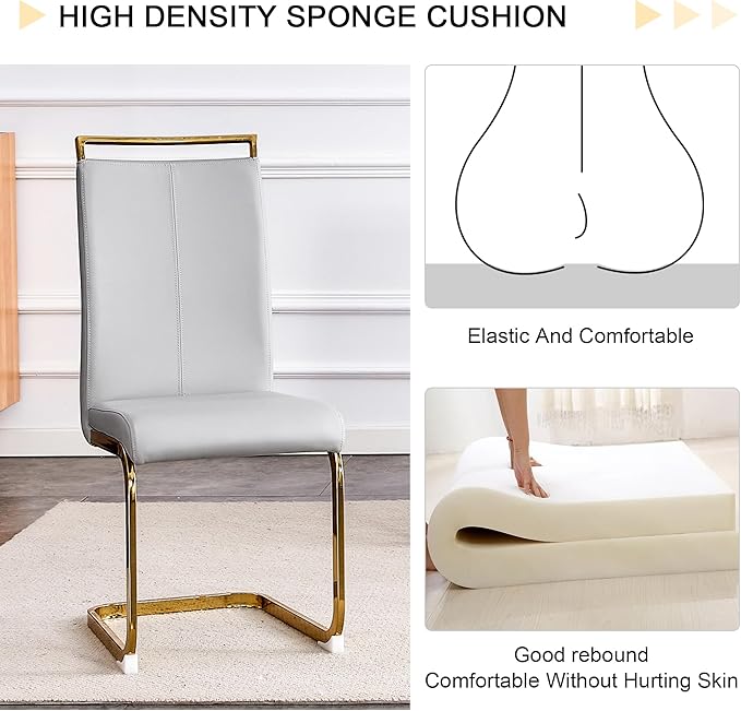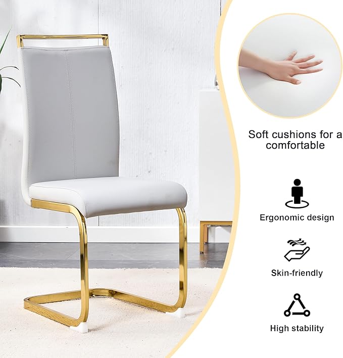 - PU Leather Chairs with High-Density Cushion:Each dining chair is upholstered in smooth PU leather with a high-density sponge cushion for ultimate comfort. The ergonomic backrest, metal frame, and non-slip foot mats ensure stable support for long meals