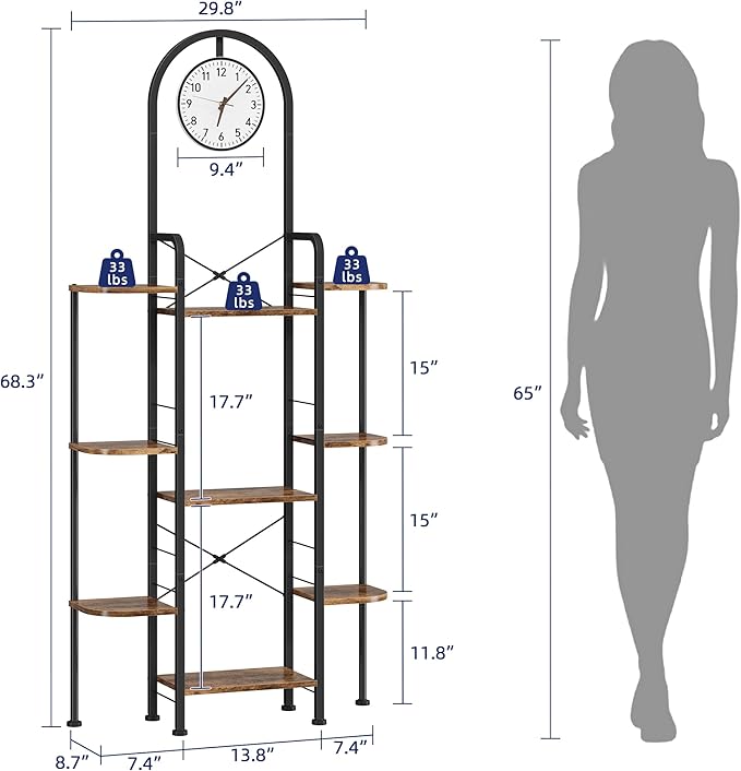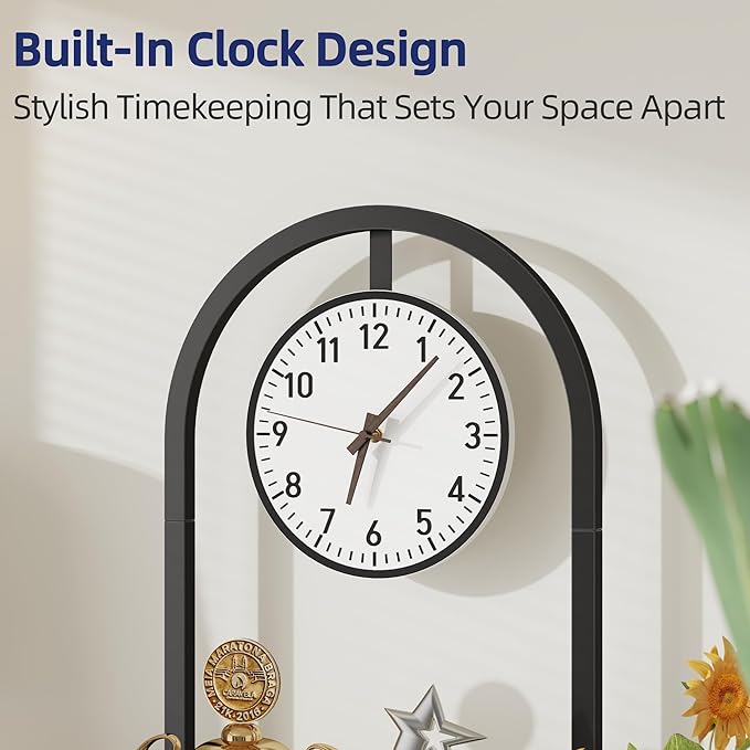 - 【Built-in Wall Clock for Timely Style】This isn’t just a bookshelf—it features a built-in clock at the top, keeping time stylishly while adding a conversation piece to your décor. Whether used as a bookcase, display shelf, or daily organizer, it combines practicality and visual appeal in one striking unit