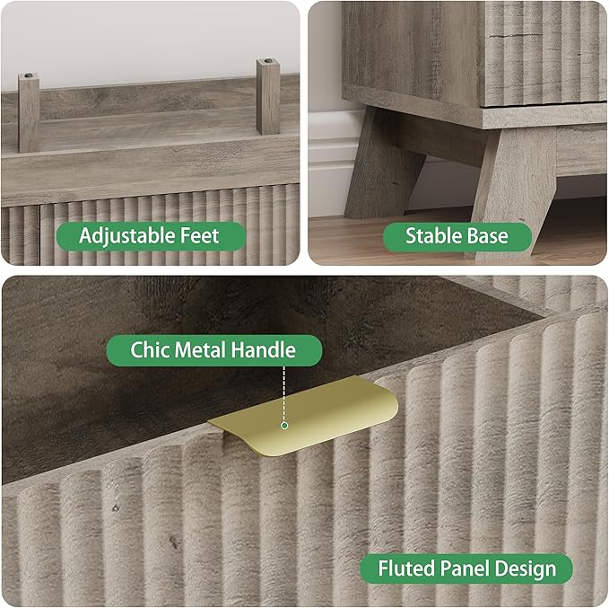 - 【Modern Chic Appearance】The unique wave-like fluted panel enhances the texture and elegance of this bedroom dresser. The thick table top features natural wood grain that complements the natural oak finish. The wide metal handle and splayed base legs add a modern touch, creating a personalized and distinctive appearance
