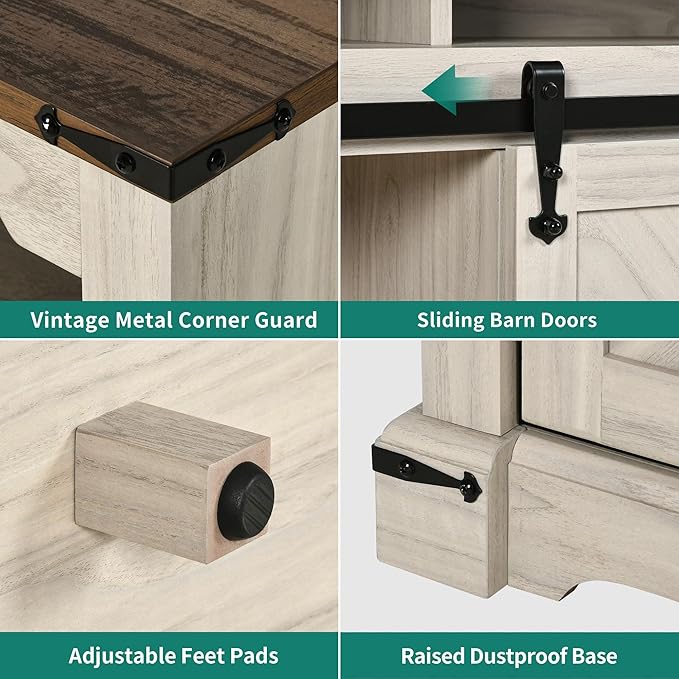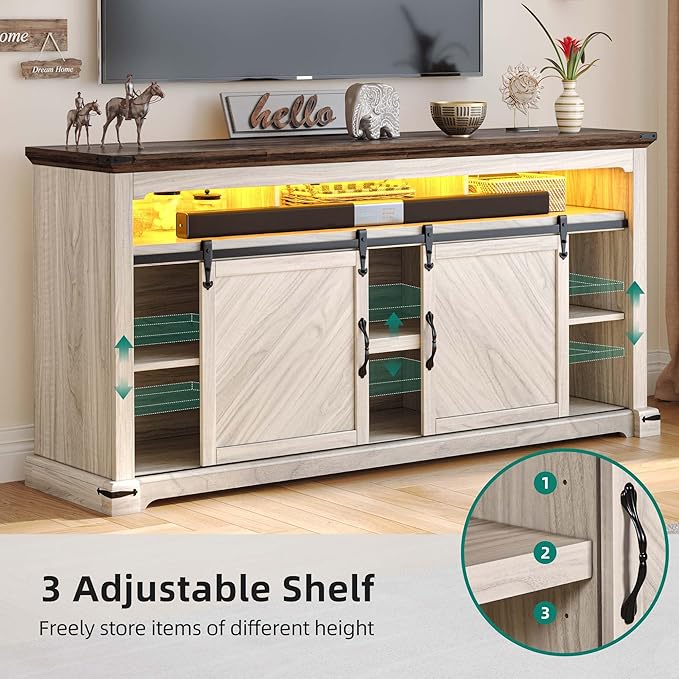 YITAHOME TV Stand for 75 Inch TV with Power Outlets, LED TV Stands Farmhouse Entertainment Center TV Media Console with Sliding Barn Doors for Living Room, Off White & Walnut Grain