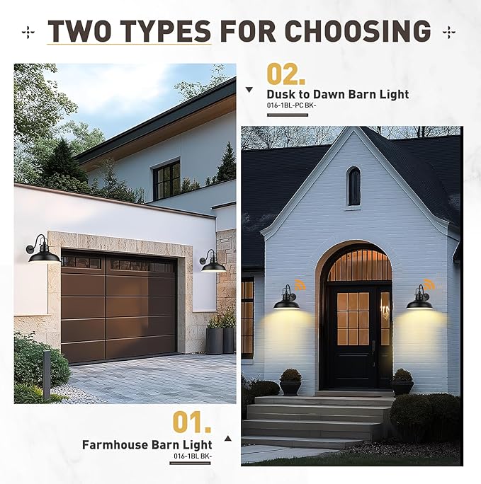 - GOOSENECK DESIGN & WEATHER RESISTANCE: Featuring a durable metal dome shade and elegant gooseneck arm design, these black exterior wall lightings are made of sturdy metal construction in a matte black finish with a white interior. Waterproof and anti-rust, it was durable while adding a unique atmosphere to your house.