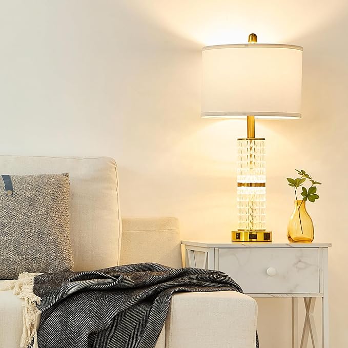 - 【High Quality Material】 White linen shade with scratch-resistant and corrosion-resistant metal edges, and K9 acrylic crystals polished and refined through multiple processes, with good light transmittance, the light refracts through the crystals, the appearance of stylish and modern, lamp for bedroom nightstand adds a sense of elegance and nobleness to your home decor, from the cosy corners of the living room and guest room to the serene ambience of the bedroom nightstand