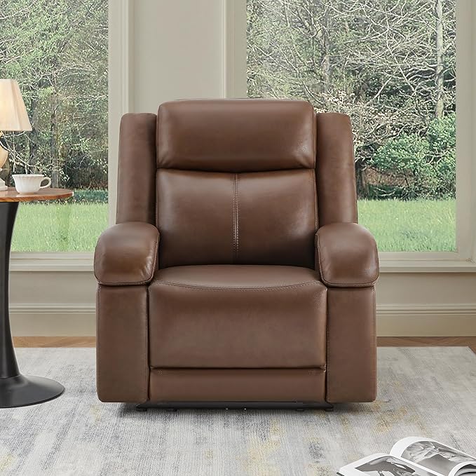 - Breathable Genuine Leather: Premium top-grain leather is covered everywhere you touch. Genuine leather recliner not only exudes luxury, but it is also soft and easy to clean and maintain. Simply wipe gently with a damp cloth to keep it looking pristine.