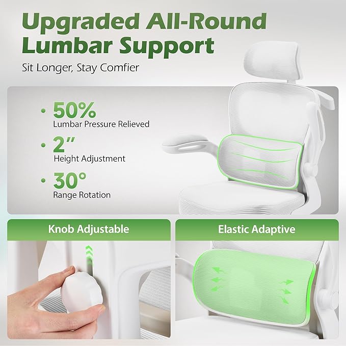 - Breathable All-Day Comfort: Stay cool and focused thanks to advanced breathable mesh fabric promoting continuous airflow. Combined with a high-density, collapse-resistant foam seat cushion, this mesh office chair prevents overheating and discomfort, even during marathon workdays