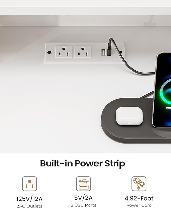 - 【Makeup Vanity with Charging Station】This vanity table is equipped with power strip which contains 2 USB ports and 2 sockets for you to charge your electronics in time. And you can also sit directly in front of this makeup vanity with lights and drawers to easily use the curling iron or hair dryer to style your hair, or watch fun videos on your cellphone.