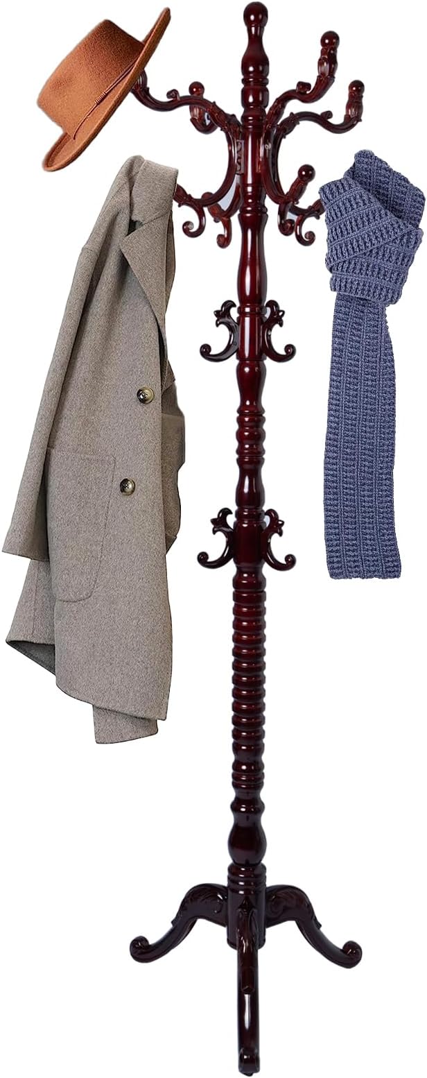 73 in Wood Coat Rack, Coat Rack Freestanding with Stable Round Base, Adjustable Height Tree Coat Racks Stand for Home Bedroom Office Hallway Entryway (Triangle Redwood)