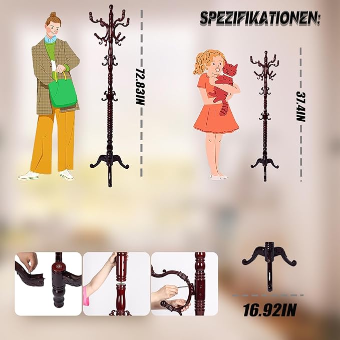 - Sturdy and Stable:The wooden coat rack is carefully selected from natural birch wood. ensures stability. exquisite resin hooks with smooth lines, hard and unbreakable. coat stands for entryway smooth and free of burrs, and it can be hung without damaging clothes