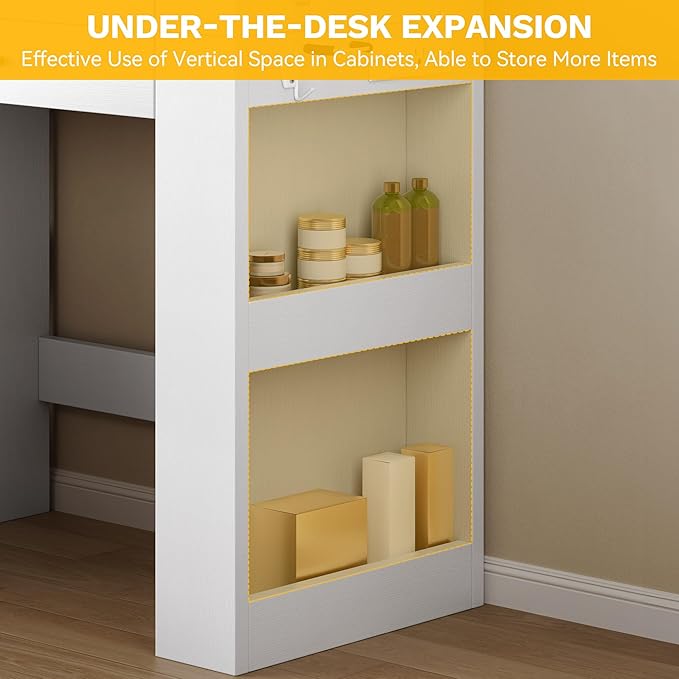 - Abundant Storage Solutions: Designed with practicality in mind, this makeup desk includes 4 shelves surrounding the mirror, 2 side shelves, a large tabletop, 3 deep drawers, and 1 wide drawer - suit for storing all your beauty products and accessories. Everything stays neatly organized so you can quickly get ready and go