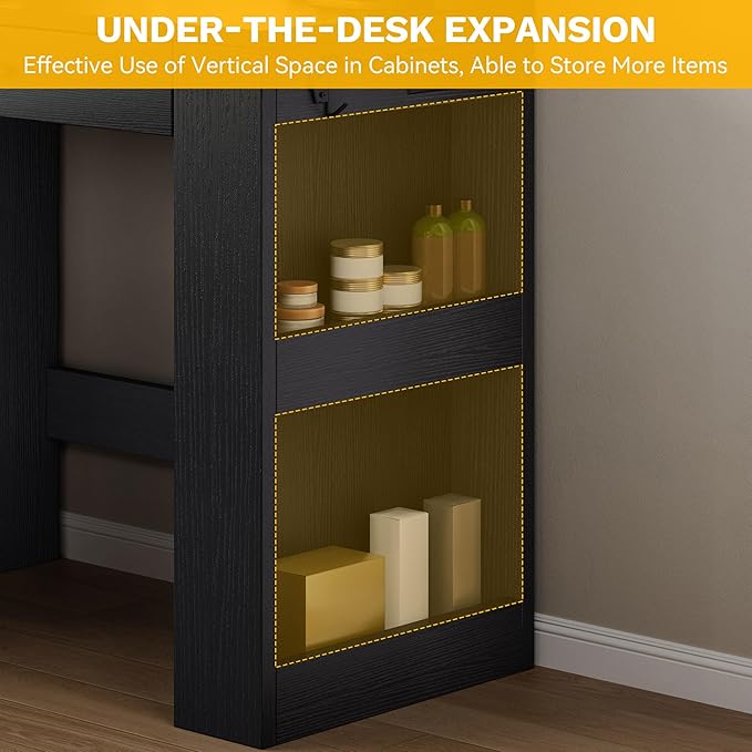 - Roomy & Functional Design: With dimensions of 39.5 inches wide, 16 inches deep, and 54 inches tall, this generously sized black vanity desk offers plenty of space for your everyday beauty needs. Its smart layout blends functionality and modern style, making it a great fit for any bedroom or dressing area