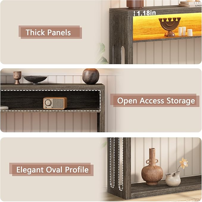 - Ample Display Space & Multi-Functional – Generous surface accommodates decorative items while doubling as practical storage. Perfect for tight spaces like apartments or hallways, its slim profile (under 10 depth) maximizes utility without crowding.