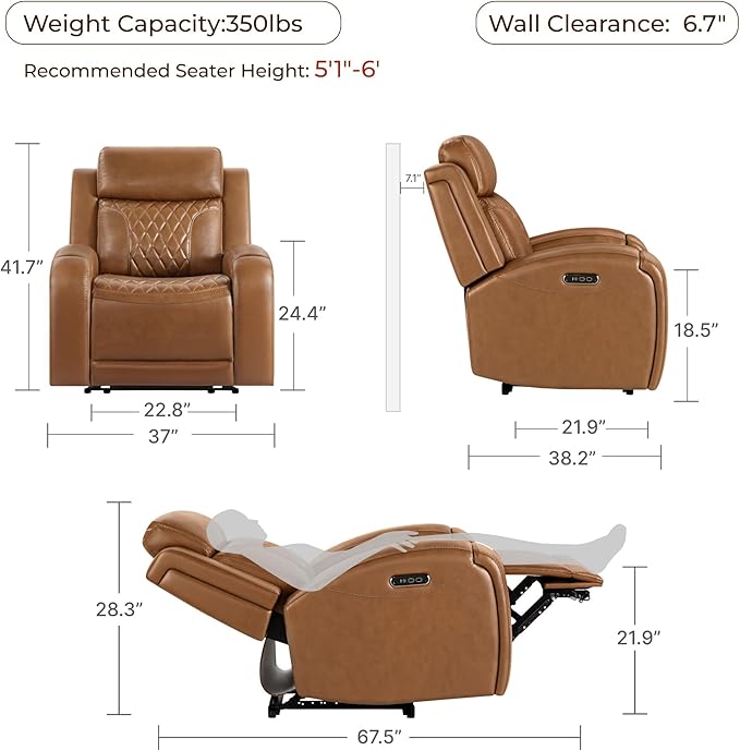 - Built to last: this recliner combines artistry with durability. Each piece is handcrafted by master craftsmen using a corner-blocked wooden frame, ensuring robust stability. The no-sag spring platform maintains its shape and support, while the high-quality metal reclining mechanism and UL-certified actuator guarantee smooth, silent operation. With a weight capacity of up to 350 lbs, this recliner promises enduring comfort and reliability, making it a worthy investment for your home.
