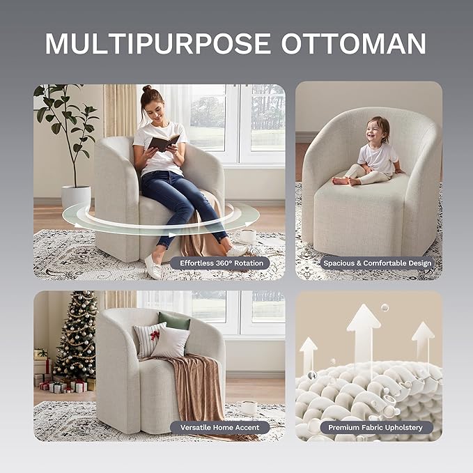 COLAMY Swivel Accent Chair,Swivel Barrel Chair,Upholstered Comfy 360 Degree Swivel Chair for Living Room/Bedroom/Waiting Room/Office(Beige)