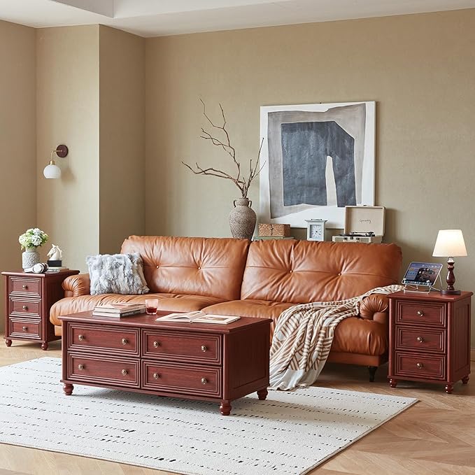 - [Sturdy and Durable] The 3 drawer nightstand Overall dimensions: 18" L x 18" W x 24" H. The farmhouse end table is carefully constructed and matched with four solid wood legs to ensure durability and stability. The thicker tabletop provides stronger load-bearing force and is not easy to damage. This couch table can accompany you for many years.