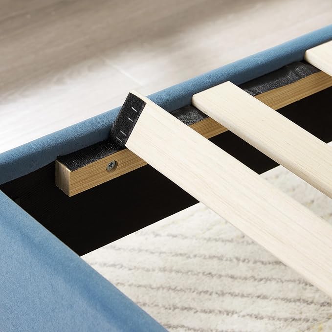 - Elegant Velvet Upholstery with Nailhead Trim: This queen bed frame adds a touch of luxury to your bedroom with soft velvet upholstery and chic silver nailhead trim, making it a stylish centerpiece for any decor.