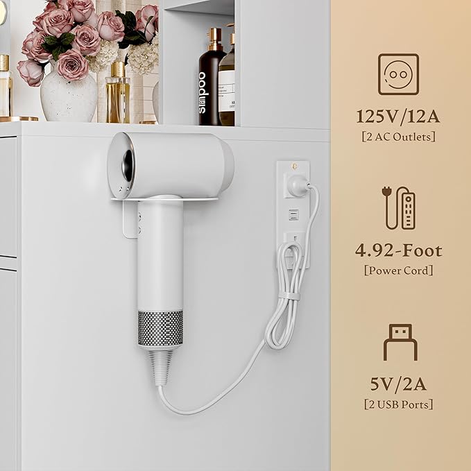 - 【Vanity Table with Charging Station】Equipped with 2 AC outlets and 2 USB ports, this vanity table allows you to conveniently power your phone, curling iron, or lighted mirror without messy cords. It’s the ideal workstation for beauty lovers and content creators