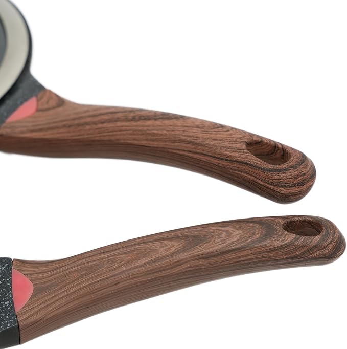 - 【Glass Lid & Heat-Resistant Handle】Features durable tempered glass lid for easy cooking monitoring. The woodgrain Bakelite handle provides ergonomic grip and stays cool during use.