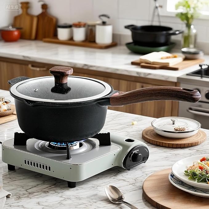 - 【All-Stove Compatibility】Cast aluminum core ensures durable construction with fast, even heating. The high-conductivity stainless steel base works on gas, induction, electric, and ceramic stoves, ideal for simmering sauces, reheating soups, or cooking vegetables.