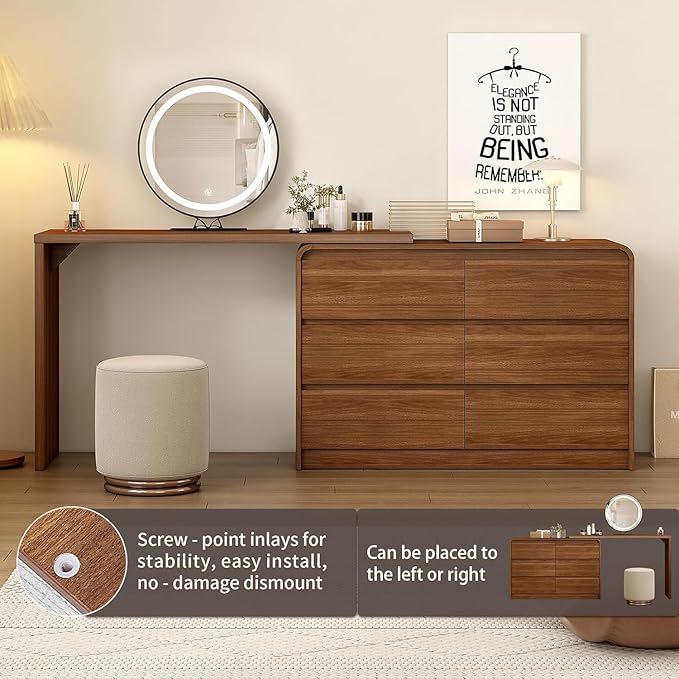- 🛏️ Versatile Dressing Table for Any Space – With an Extendable Design (50-90 inches), Messenya Dressing Table Fits Seamlessly in Small Bedrooms or Spacious Walk-in Closets. The Rounded Corners Add a Modern, Safe Touch.
