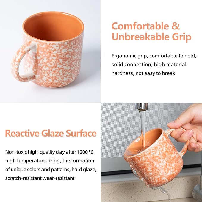 MONITO 12 OZ Coffee Mugs Set of 4, Ceramic Coffee Mugs,Modern Coffee Mugs Set with handle for Tea/Latte/Cappuccino/Milk/Cocoa. (Orange, 4 Count(Pack of 1)