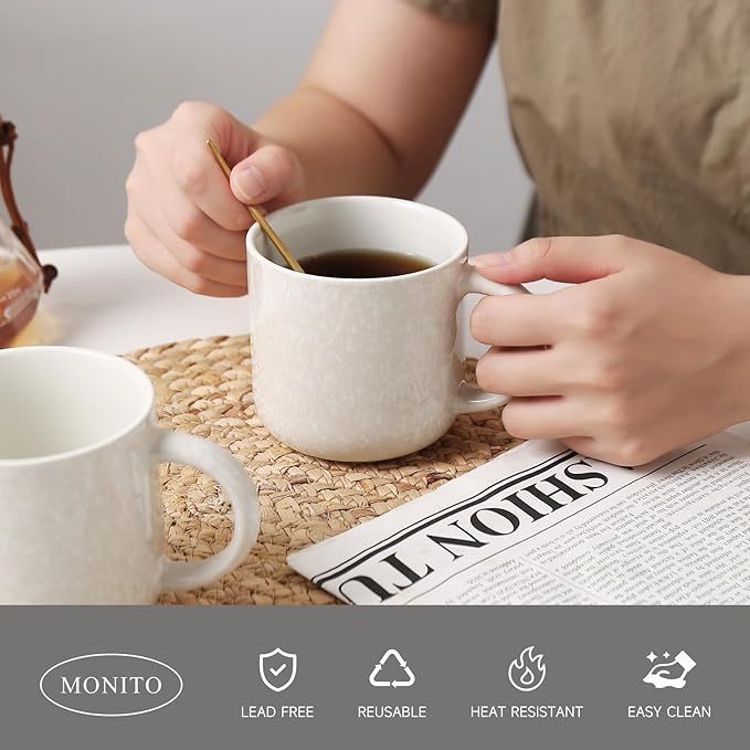 12 OZ Coffee Mugs Set of 4, Modern Ceramic Coffee Mugs Set with handle for Tea/Latte/Cappuccino/Milk/Cocoa.White.