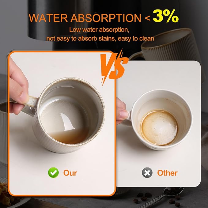 - EASY TO CLEAN - The smooth glaze design prevents coffee or tea stains from adhering easily. Dishwasher safe, this ceramic mug set is very convenient to clean after entertaining guests, allowing you to relax and rest.