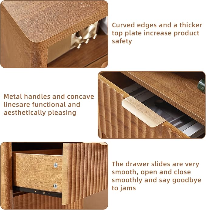 - [LEYAOYAO Versatile Farmhouse Nightstand] Our fluted bedside table boasts a minimalist curve profile and a drawer with a unique waveform panel, which is a perfect blend of modern aesthetics and functional design. The smooth curved edges make your bedroom exude elegance! This night stand can be used not only as a bed side table but also as a living room end table. Add a strong rustic colour to your bedroom and living room.