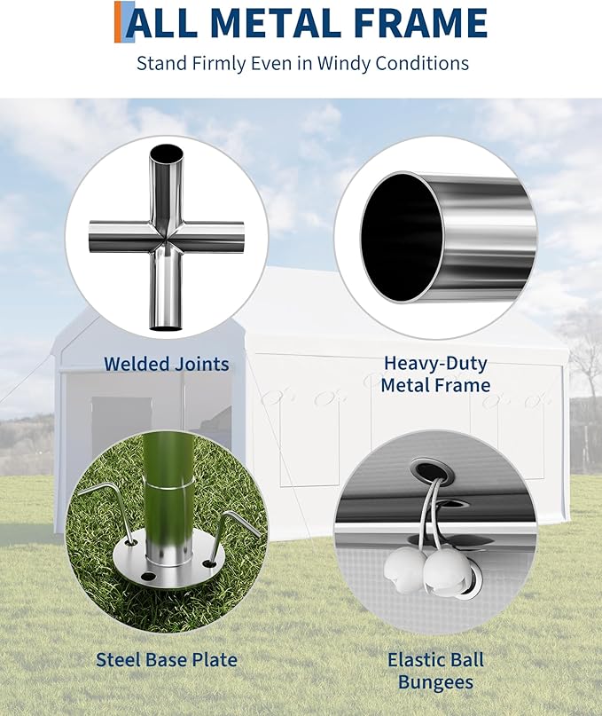 - Robust Galvanized Steel Frame: Featuring a galvanized steel frame, this outdoor portable garage offers unmatched stability and durability, making it an ideal choice for a reliable shelter that protects your investment from harsh conditions