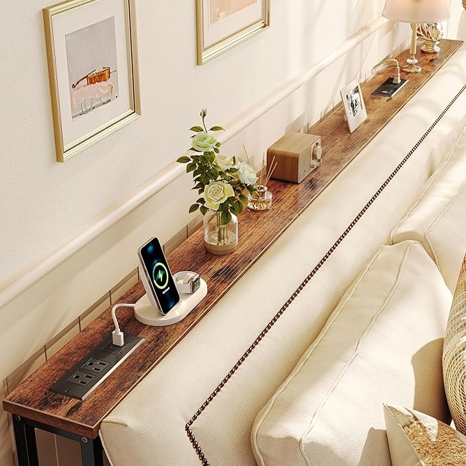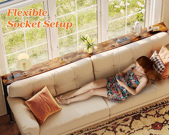 - 【Easy to Assemble & Fits Anywhere】Whether behind a sofa, in an entryway, or along a narrow wall, this couch table behind sofa is the perfect storage solution for tight spaces. Designed to leave room for wall vents and easy airflow. Comes with clear instructions, labeled parts, and tools included, you'll have this sofa table with outlet set up in no time
