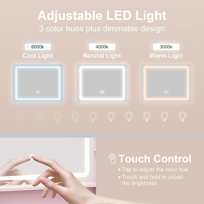 - 【Built-in mirror and lighting】Making it convenient for you to get ready in the morning or for a night out, the adjustable LED lighting features 3 customizable modes , letting you create the perfect ambiance for every step of your beauty routine.