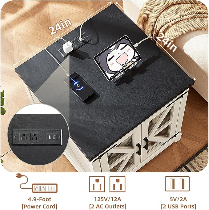 - Large Side Table with Charging Station: This nightstands has 2 AC outlets and 2 USB ports, and the bed side table allows you to use multiple plugs at once. With its farmhouse design look, this end table always adds visual charm to a space. The combination of good wood grain design and unique look can easily fit into a variety of home scenarios and suits a wide range of decorating styles.