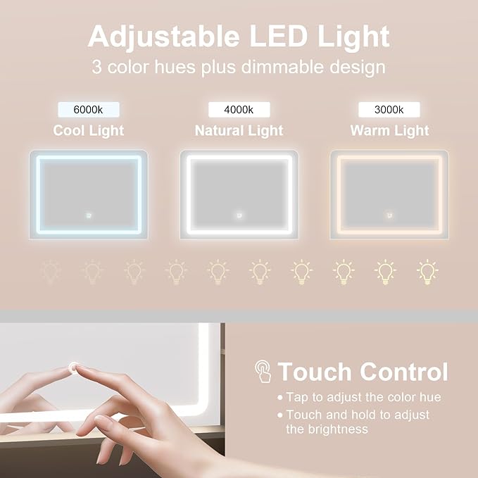 - 【Built-in mirror and lighting】Making it convenient for you to get ready in the morning or for a night out, the adjustable LED lighting features 3 customizable modes , letting you create the perfect ambiance for every step of your beauty routine.