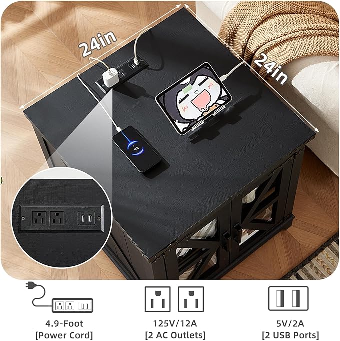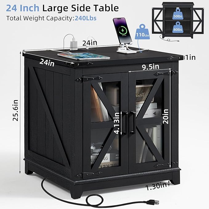 - Large Side Table with Charging Station: This nightstands has 2 AC outlets and 2 USB ports, and the bed side table allows you to use multiple plugs at once. With its farmhouse design look, this end table always adds visual charm to a space. The combination of good wood grain design and unique look can easily fit into a variety of home scenarios and suits a wide range of decorating styles.