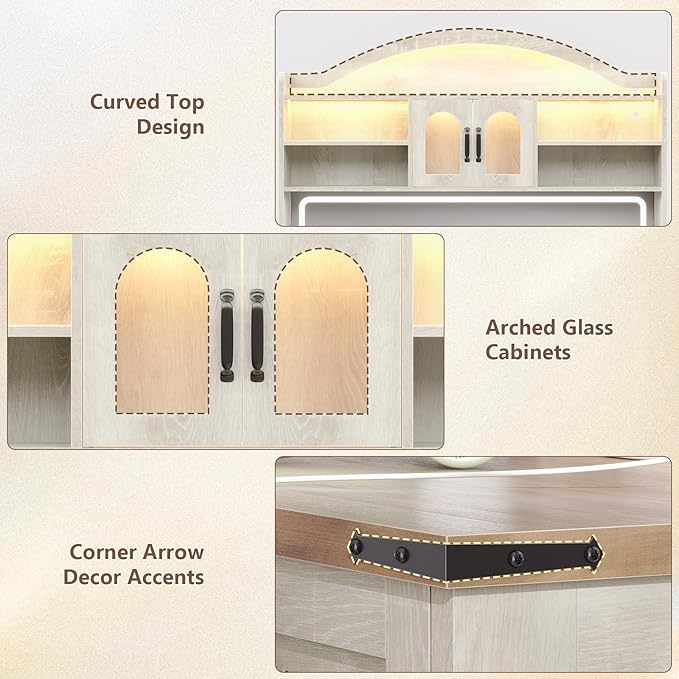 - 【Spacious, Elevated Design】 Experience comfortable seated posture with our taller vanity desk. Boasting a large desktop surface and a smooth, elegant arc top design, this makeup vanity desk with lights offers ample room for all your grooming essentials