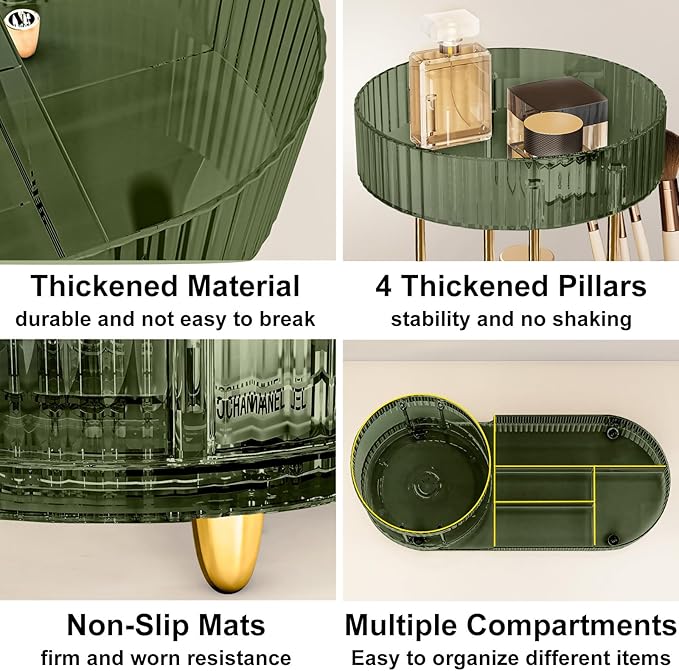 - 【Multi-compartment Design】Multi-divided tray on the other side of the makeup storage organizer. The 5 compartments can easily store lotions, perfumes, makeup brushes, lipsticks, eyeshadow palettes, etc., making it convenient for you to organize and classify items and keep the countertop tidy.