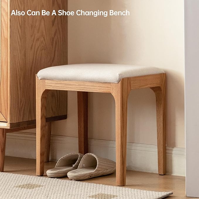 Solid Wood Small Vanity Stool Chair, High-Rebound Sponge Seat, Fully Assembled Makeup Chair, Footstool for Bedroom, Dining Room, Entryway, Natural Oak