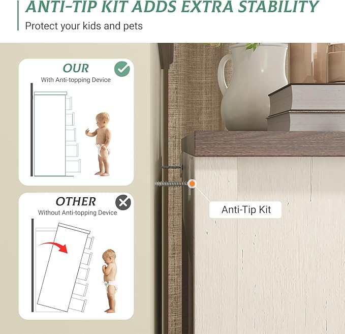 - Sturdy Support & Anti-Tipping Safety: This wooden dresser features 2 small drawers and 4 large drawers, supported by a sturdy base with two L-shaped anti-tip devices underneath for enhanced stability. Two additional L-shaped anti-tip devices are included on the back to securely anchor the chest of drawers to the wall, ensuring added safety for your home