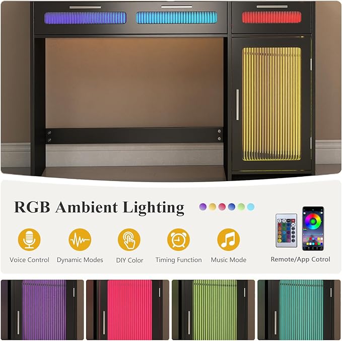 - 【Acrylic Door Cabinet with RGB Ambient Light】: Acrylic door drawers & side cabinets feature RGB ambient lighting, which can be controlled by mobile app or button.Offers 60,000 static colors, multiple dynamic light modes, music mode, microphone mode and timing function. In music mode, the lights flash to the rhythm of your music for a stunning visual experience.
