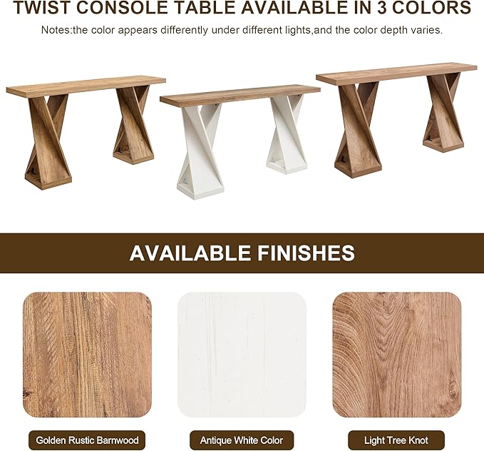 - Innovative Twisted geometric form Design: The rustic console table masters the art of simplicity. The distinctive twisted shape enhances the texture and spatial presence of this exceptional piece. Cool and contemporary and a vibe that’s warm and inviting. Your warm and welcoming disposition is reflected in the charming geometry elements and Weathered rustic texture finish. Even with its poise, this storage hallway table remains practical.
