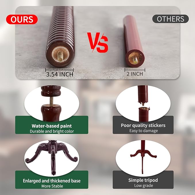- STURDY AND STABLE STRUCTURE: The chassis of the wooden coat rack adopts a high quality resin and enlarged triangle base, which is stable and does not shake. The main pole diameter of 3.54inch, which is thick and sturdy and can bear 300 LBS