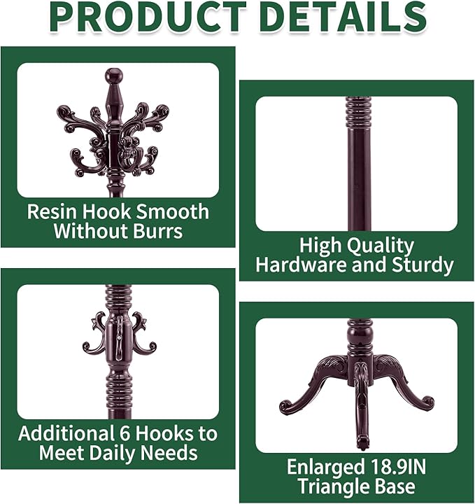 - VINTAGE COAT RACK 14 HOOKS: This coat rack stand has 14 exquisite resin hooks have smooth lines, and each piece is manually polished by workers. The rounded corners are no burrs, and the texture is high-end, takeing care your clothes from damage