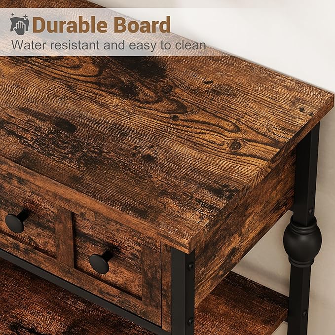 - Durable & Sturdy Materials - Constructed with an industrial metal frame and high-quality MDF, the industrial metal frames are manufactured through a multi-layer process. This console table for entryway excels in durability and stability, able to withstand the wear and tear of daily use, even in busy entry areas. The surface of the table is waterproof and anti-corrosion. You only need to use a wet towel to restore the surface to cleanliness.