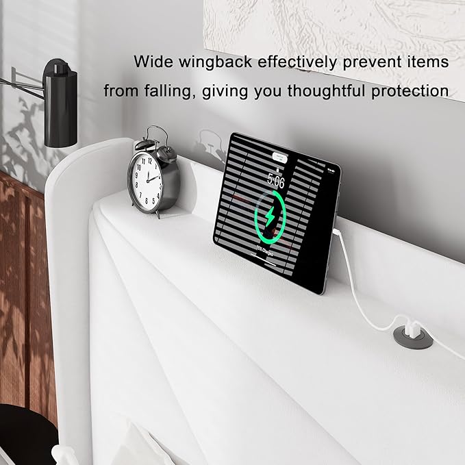 - Special Feature : Heavy-Duty Metal Frame, PD Type-C Fast Charging Station, Squeak Resistant, Storage Wingback Headboard, Soft Velvet Heavy-Duty Metal Frame, PD Type-C Fast Charging Station, Squeak Resistant, Storage Wingback Headboard, Soft Velvet